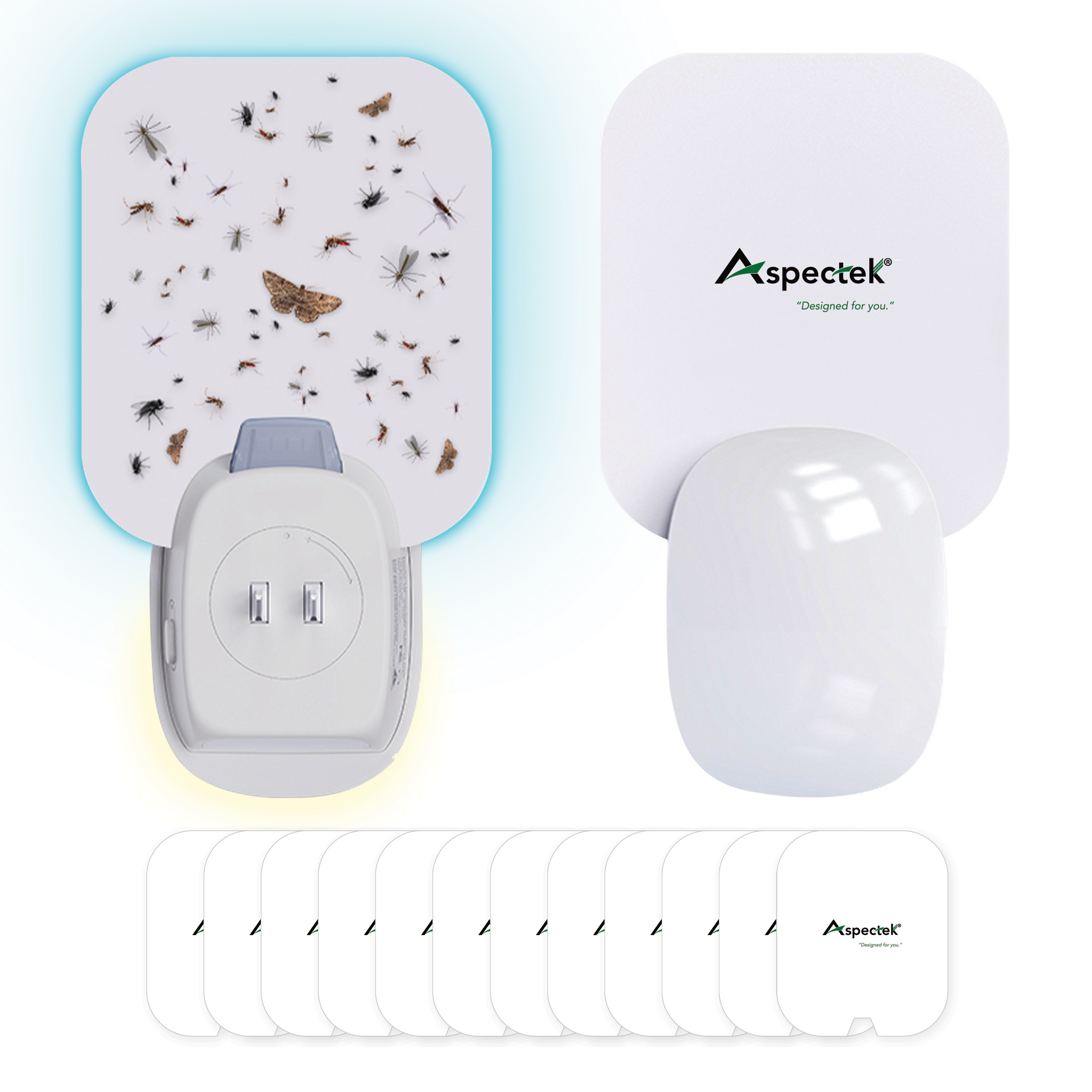 2-Pack Aspectek Sticky Fly Insect Trap for Indoor, Plug-in Blue Light Bug Control with 12 Packs of Sticky Glue Pads, Night Light UV Attractant Catcher for Home
